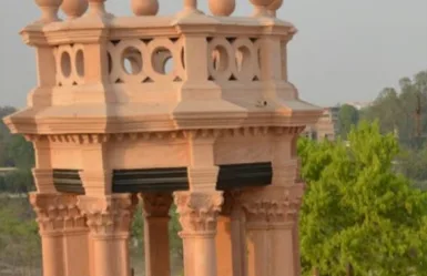 The most striking features of Kothi Farhat Baksh lie in its elevated pavilions and corner towers. These elements were designed not only as visual markers, but as devices of surveillance, ceremony, and climate response offering shade, ventilation, and commanding views across the palace precinct.